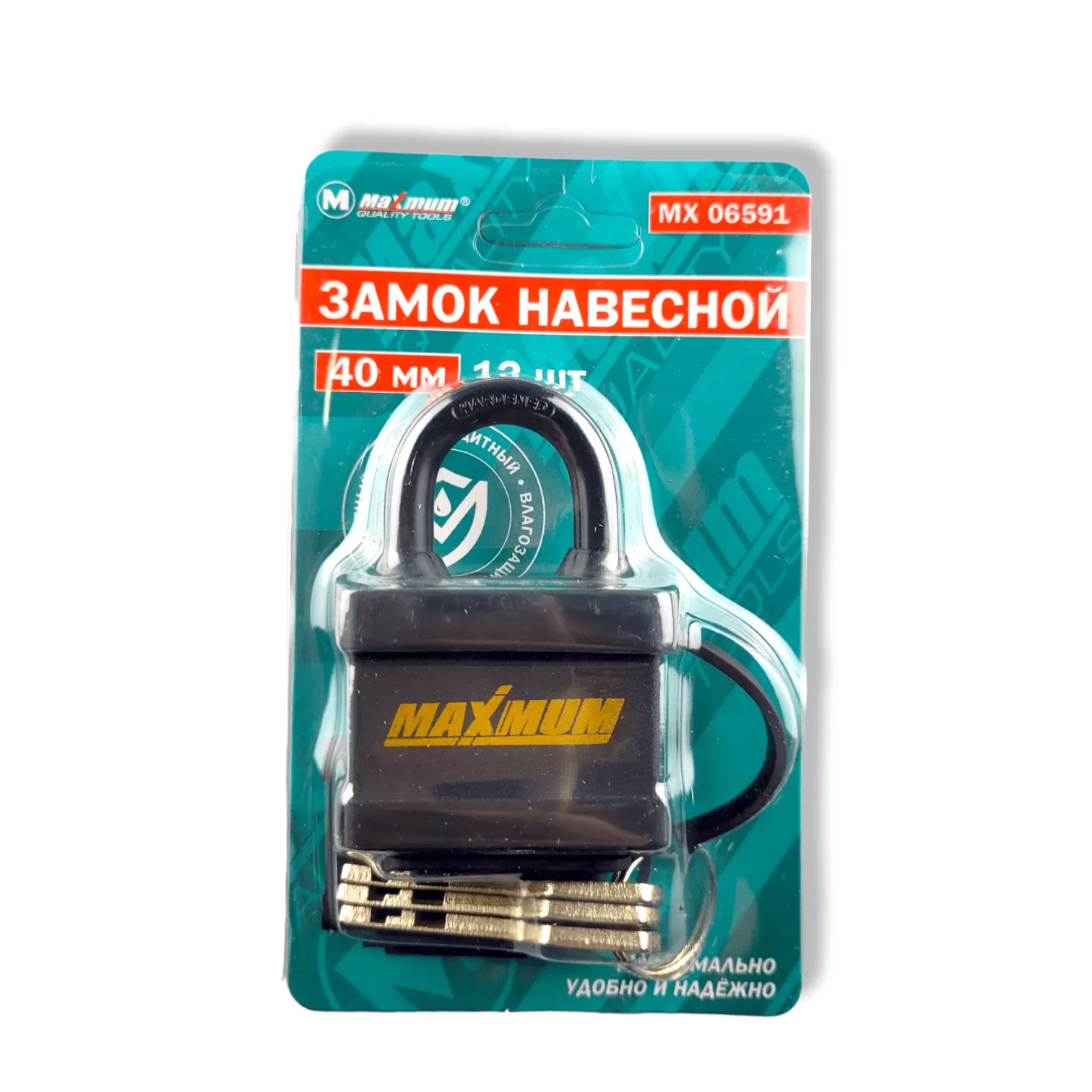 Замок навесной влагозащитный 40 мм от «Maximum» выполнен в пластиковом кожухе для защиты от воды, грязи, оледенения.