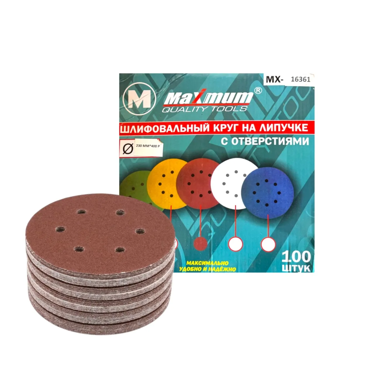 Шлифовальный круг на липучке 225 мм P 400, с отверстиями, "MAXIMUM" МХ 16361